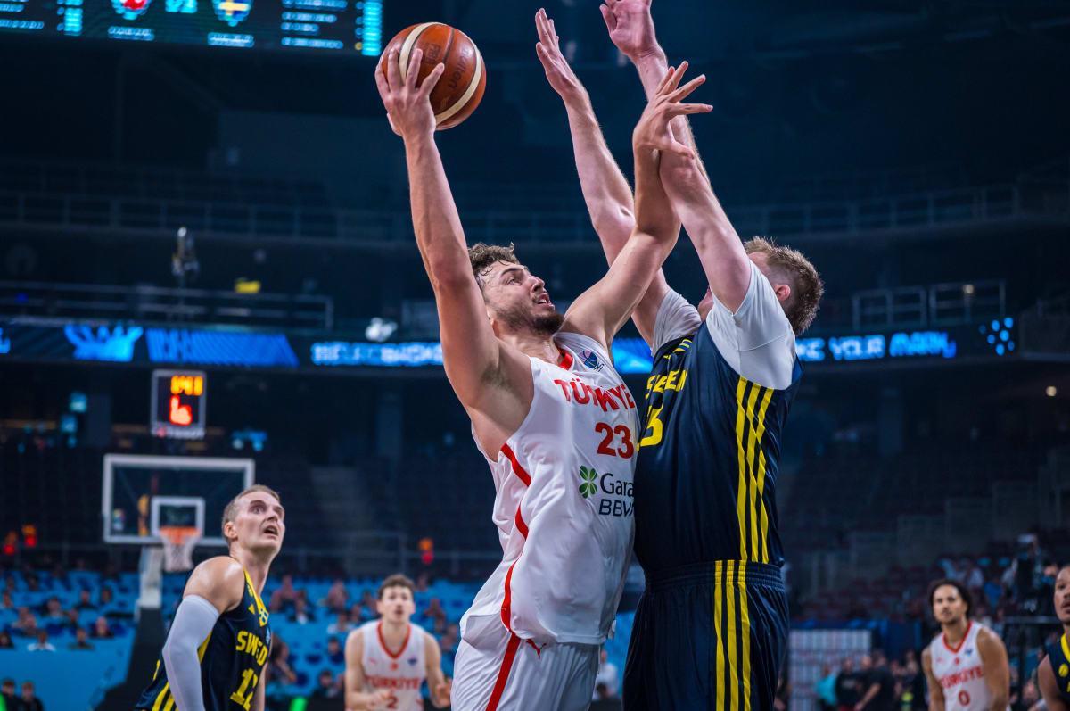 本场比赛中,土耳其队的内线支柱阿尔佩伦-申京(Alperen Sengun)又一次打出了极其精彩的表现。申京全场出场35分12秒,投篮16中8,三分线外1中0,罚球12中8,拿下了全场最高分24分外加16篮板6助攻2盖帽的两双数据,其中还包括了9个前场篮板,还有2次失误和4次犯规,正负值为0。申京在进攻端不断抢下前场篮板,不断给对手内线制造威胁,并且得到了大量的分数,他也依然是展现出了相当不错的传球能力和策应能力,他在防守端也是能够起到内线防守方面的作用。最关键的是,在上半场比赛表现不佳的情况下,申京在下半场比赛中及时调整了自己的状态并且在下半场比赛中大杀四方。申京的一系列出色表现也是帮助球队稳住了局面并且为这场胜利做出了巨大的贡献。