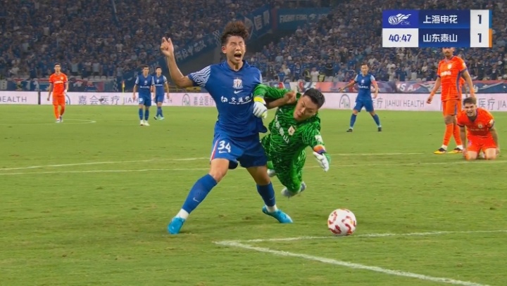 第40分钟,刘诚宇抢断洛佩斯,王大雷出击犯规,裁判判罚点球。吴曦主罚命中,申花2-1再度领先!