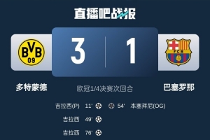 体育资讯4月17日讯 在欧冠1/4决赛次回合,多特蒙德主场3-1战胜巴萨。而跑动距离也能体现出多特蒙德球员的努力。